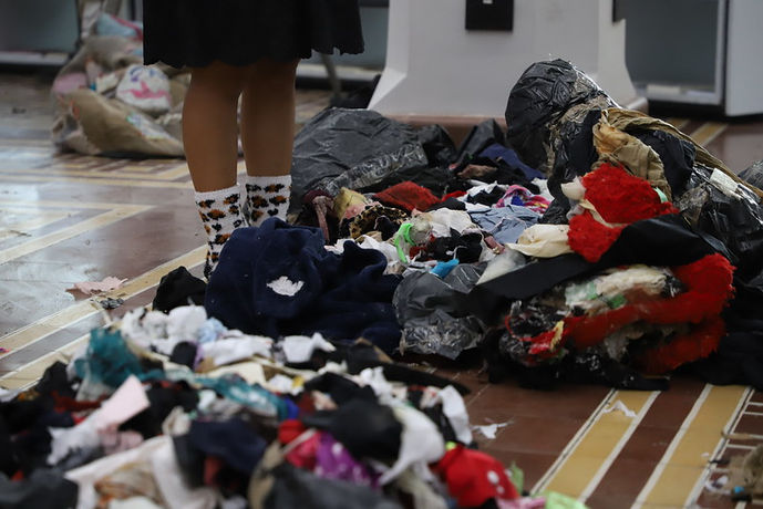 Zurciendo Vacíos or ‘Mending Voids’, is a performative textile sculpture made with Nuevo Leon’s (Mexico) community through an upcycling marathon. Mending Voids emerged after the success of Abrazo Entramado 1.0 and the experiences embroidering in the public space and mending ‘Abrazo Entramado’ to transport it from LABNL to Centro Cultural Plaza Fátima. Tere Chad & Cordelia Rizzo developed a collaboration that invited to mend and darn the voids that remain in the social fabric when violence is normalised. The aesthetics of upcycling represents a fragmented social fabric. Zurciendo Vacíos not only needs a community to gather and collaborate to create it, but also a coordination of the performers inorder to be able to wear the prototype. The project was materialised through a performance and experimental catwalk amongst other events.